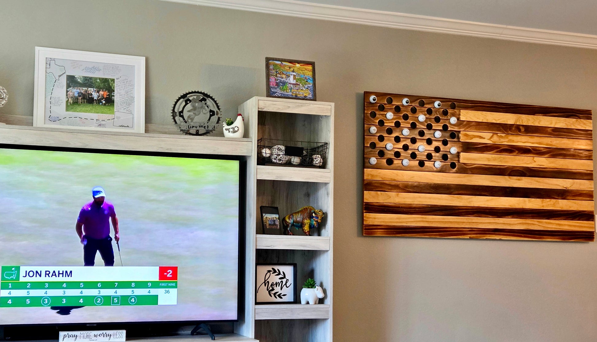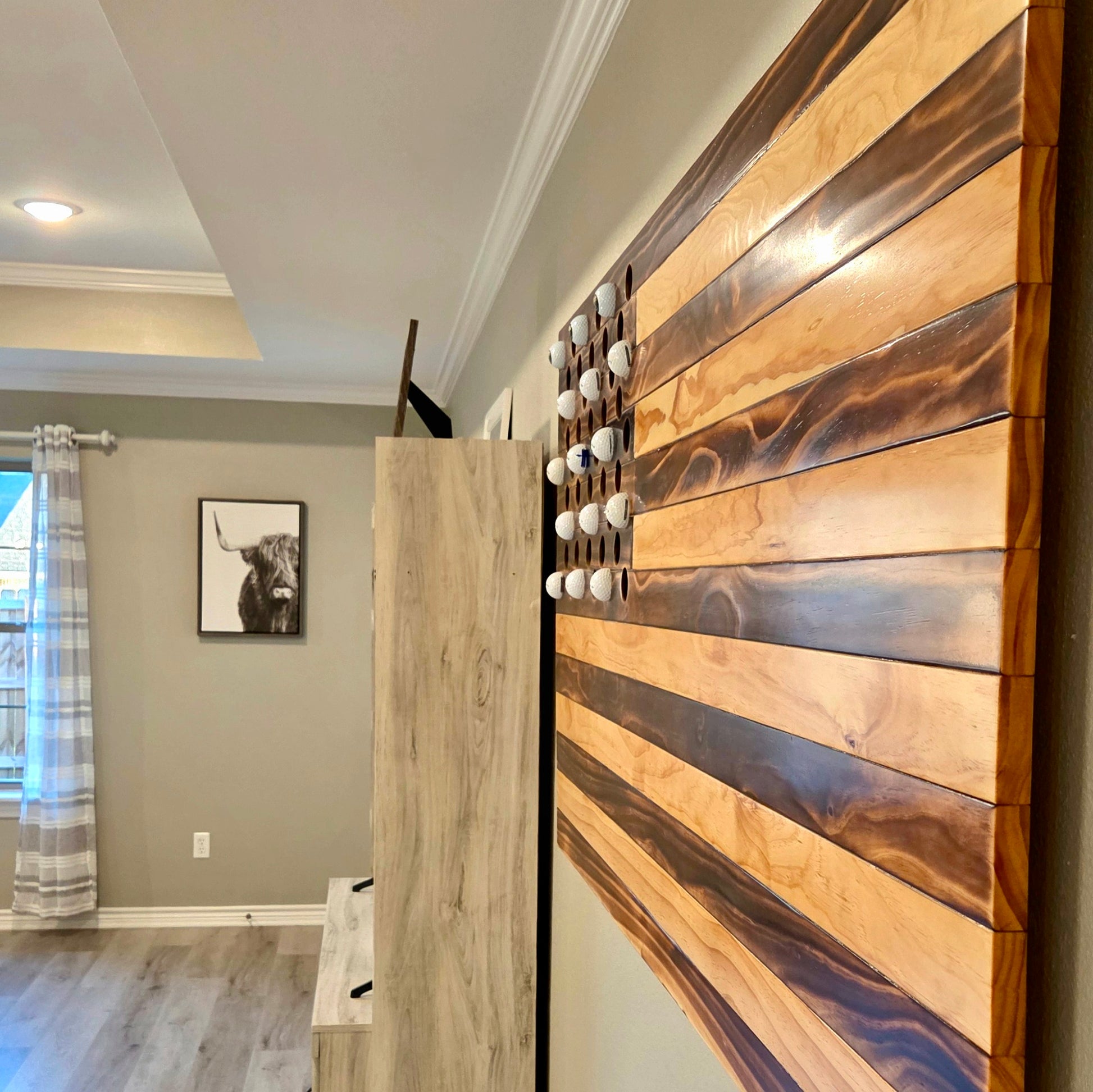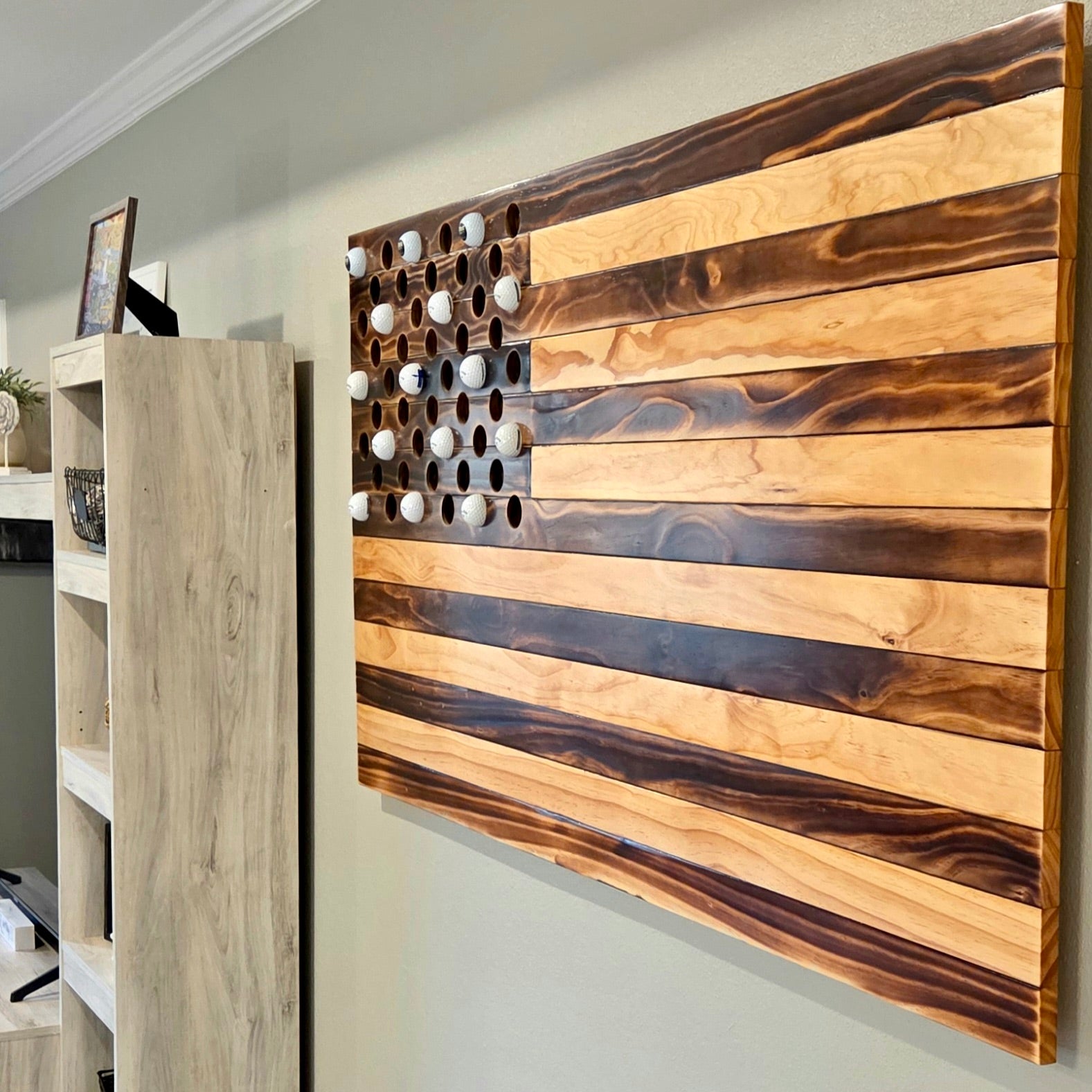 This handcrafted Rustic Custom Golf Ball Flag is more than wall art—it's a tribute to your golf journey. Made from premium pine and designed to hold your most meaningful golf balls, it's a bold, functional display piece that brings personality and pride to any space.